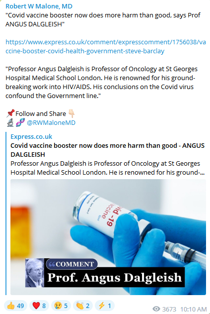[069]UK Prof of oncology Angus Dalgleish, renowned for his ground-breaking work into HIV/AIDS says "Covid vaccine booster now does more harm than good" media link