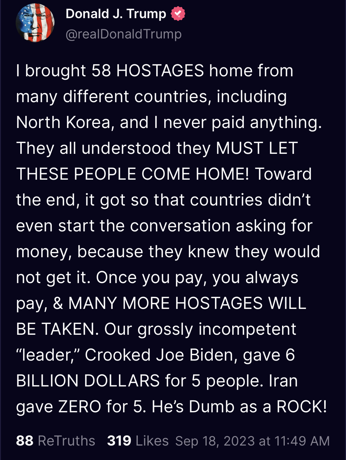 [081]Donald J. Trump: 58 HOSTAGES home Once you pay, you always pay, & MANY MORE HOSTAGES WILL BE TAKEN media link