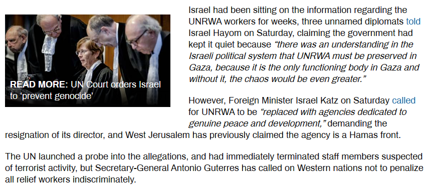 [070]A 6-page Israeli intelligence dossier alleges that some 190 UNRWA employees have doubled as Hamas or Islamic Jihad militants media link
