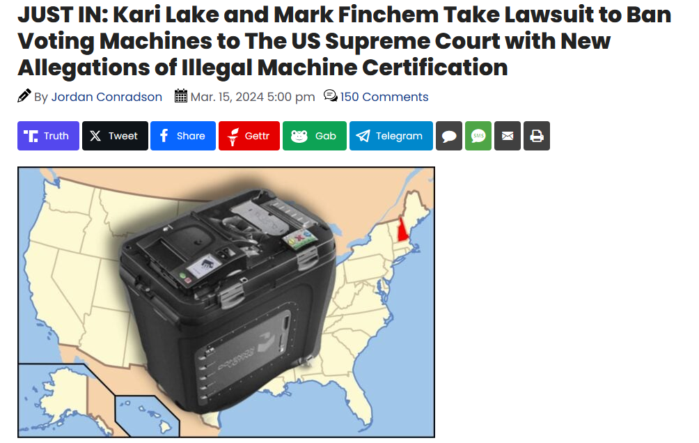 [111]Kari Lake and Mark Finchem Take Lawsuit to Ban Voting Machines to The US Supreme Court with New Allegations of Illegal Machine Certification media link