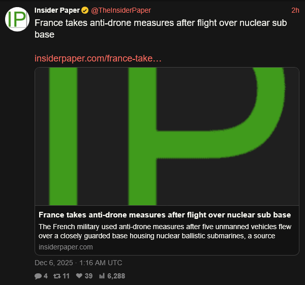 [024]BREAKING: France Opened Fire on Five Unidentified Drones Over Its Nuclear Sub Base media link media link media link