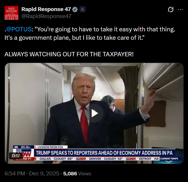 [080]@POTUS: "You're going to have to take it easy with that thing. It's a government plane, but I like to take care of it." media link media link