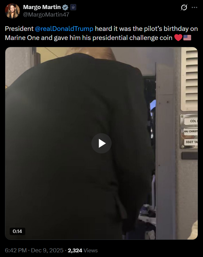 [076]@realDonaldTrump heard it was the pilot’s birthday on Marine One and gave him his presidential challenge coin media link media link