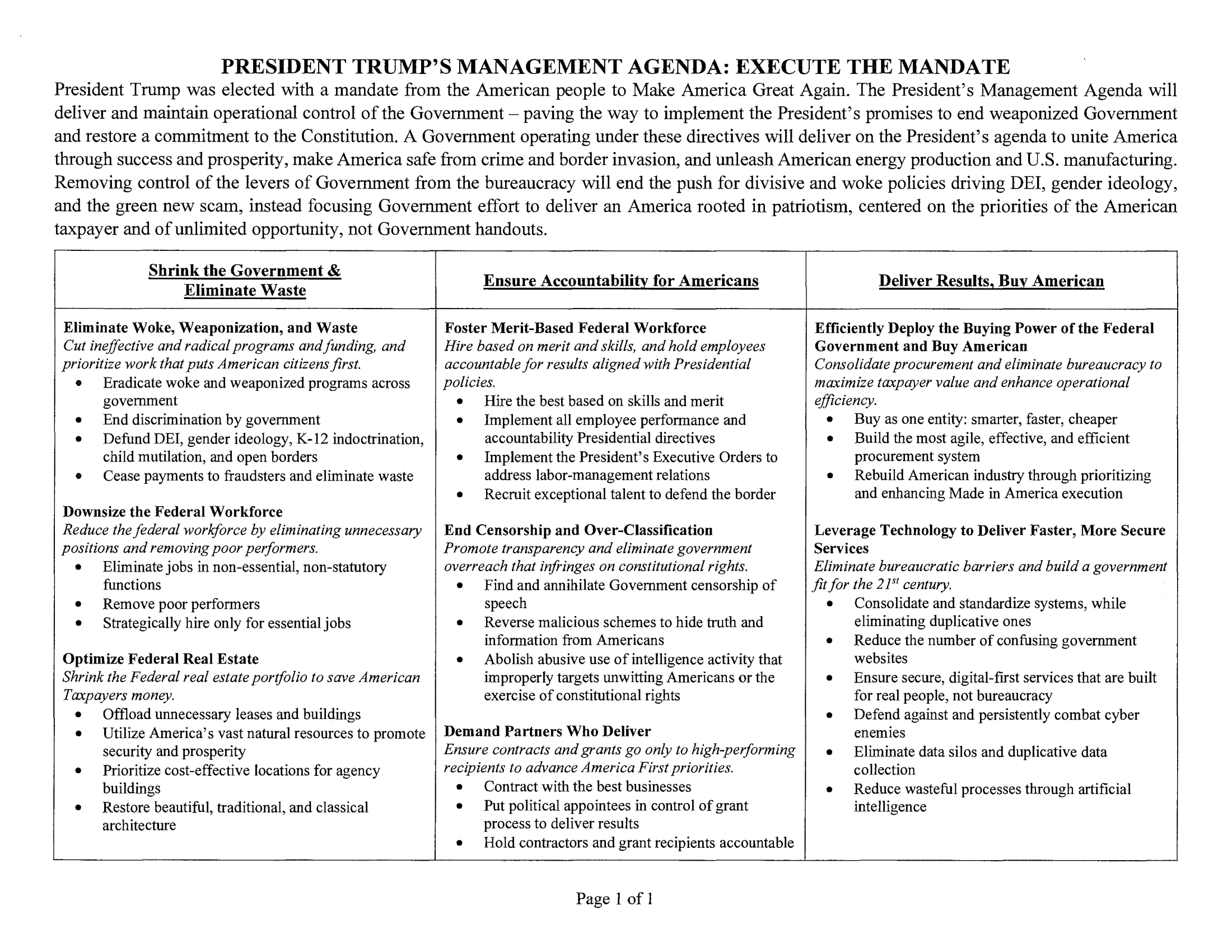 [065]“Execute the Mandate:” President’s Management Agenda Pushes Forward Existing Federal Reform Initiatives media link