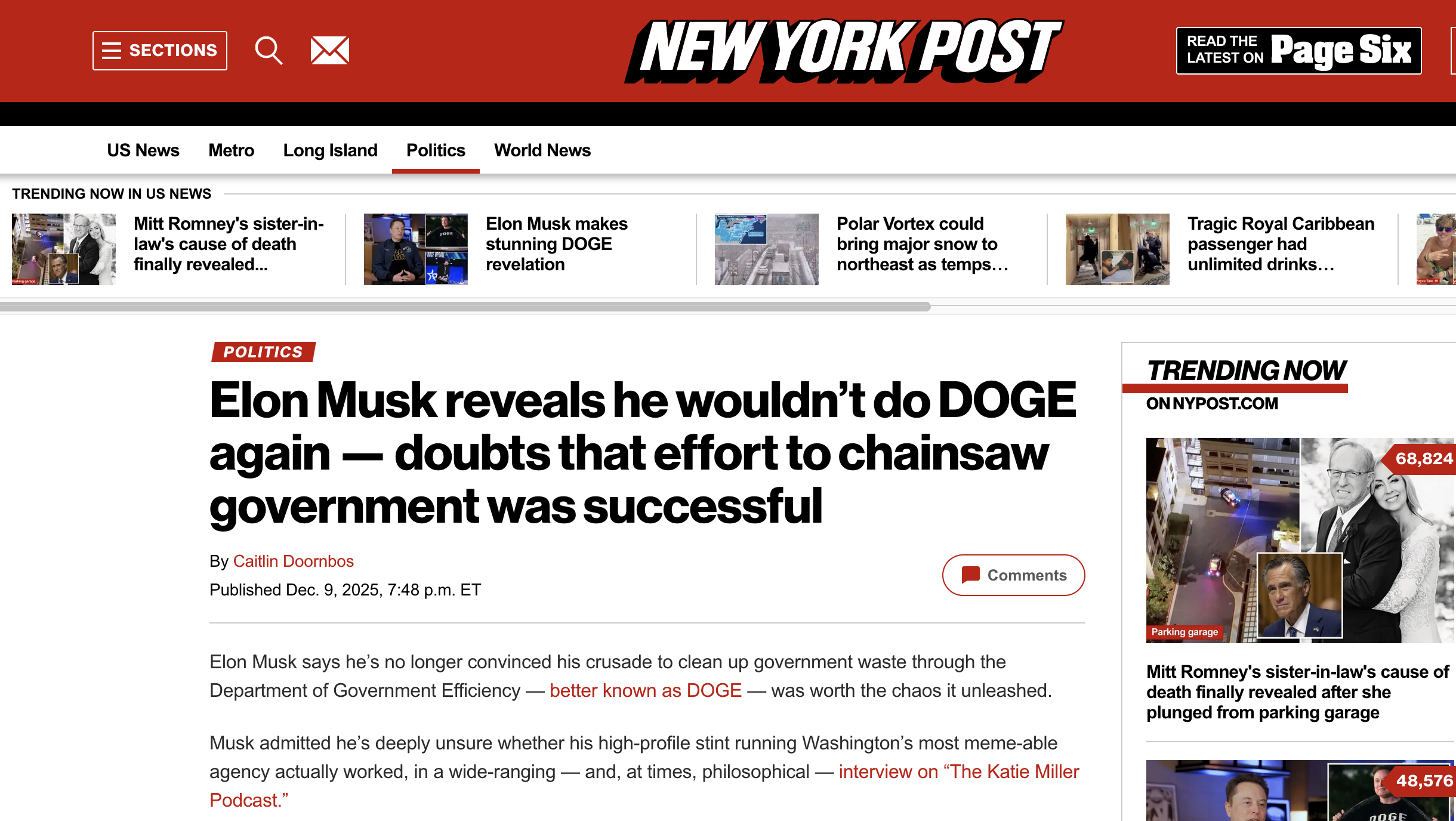 [104]Elon Musk reveals he wouldn’t do DOGE again — doubts that effort to chainsaw government was successful media link
