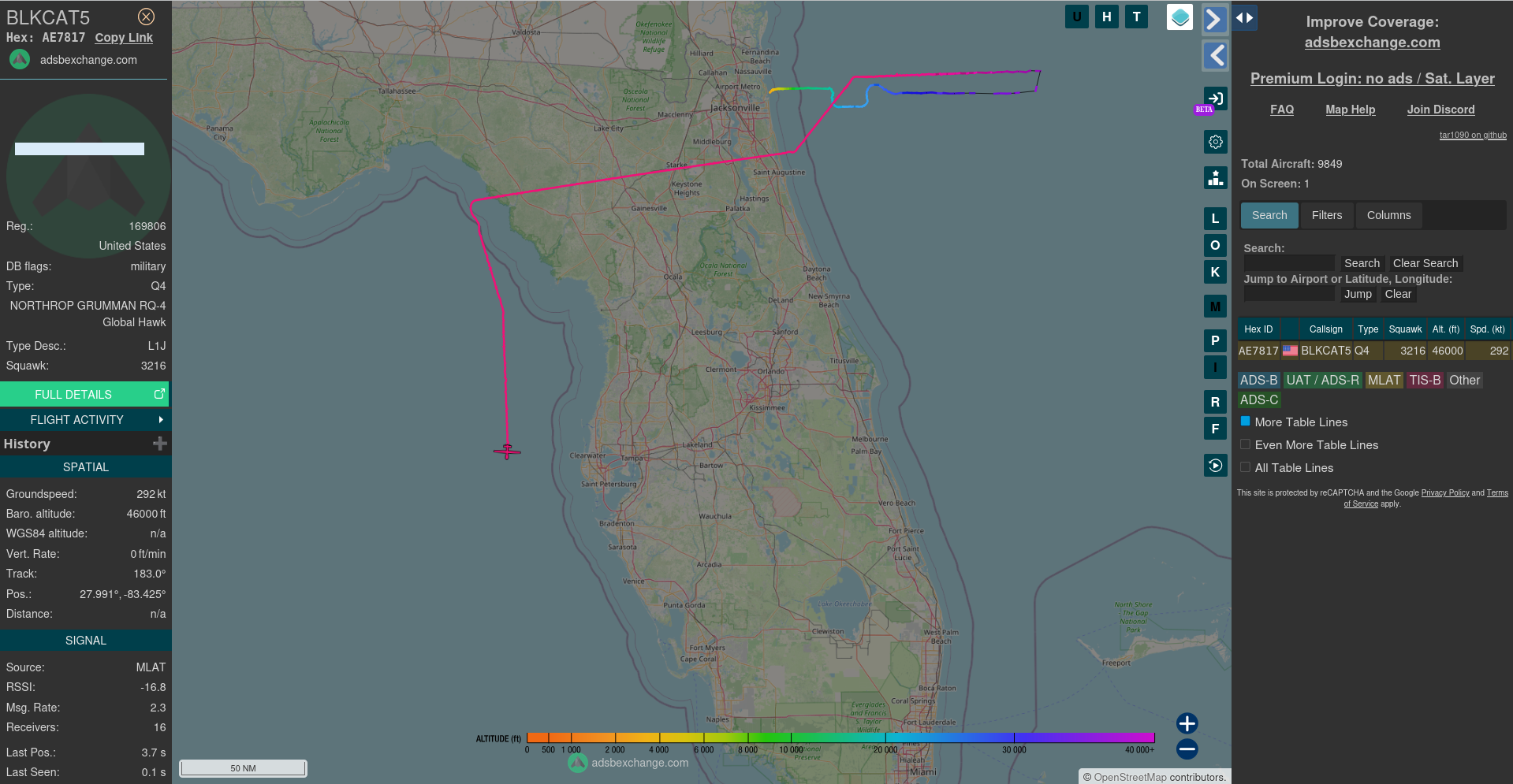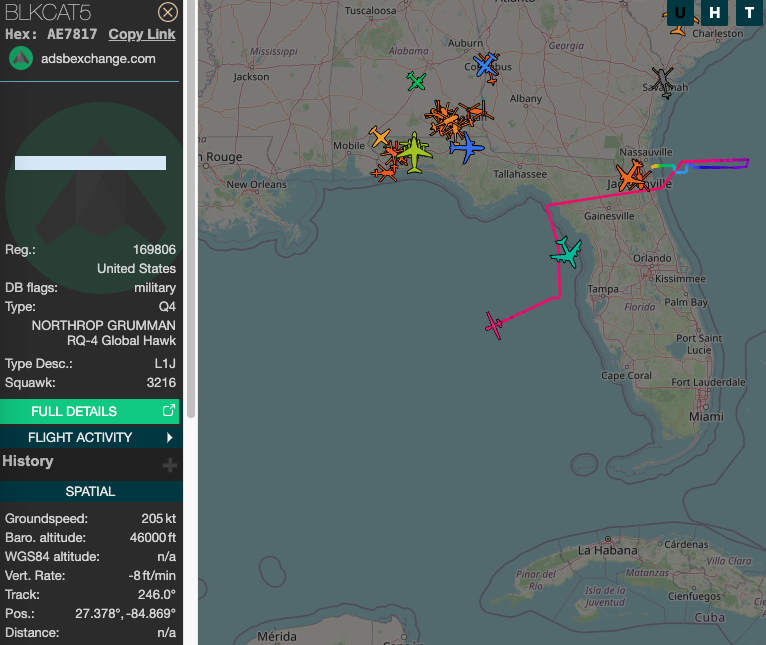 [100]PF: The drone that's been hanging around Jacksonville is headed out over the Gulf of America media link