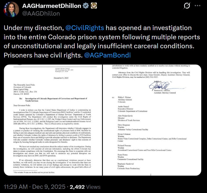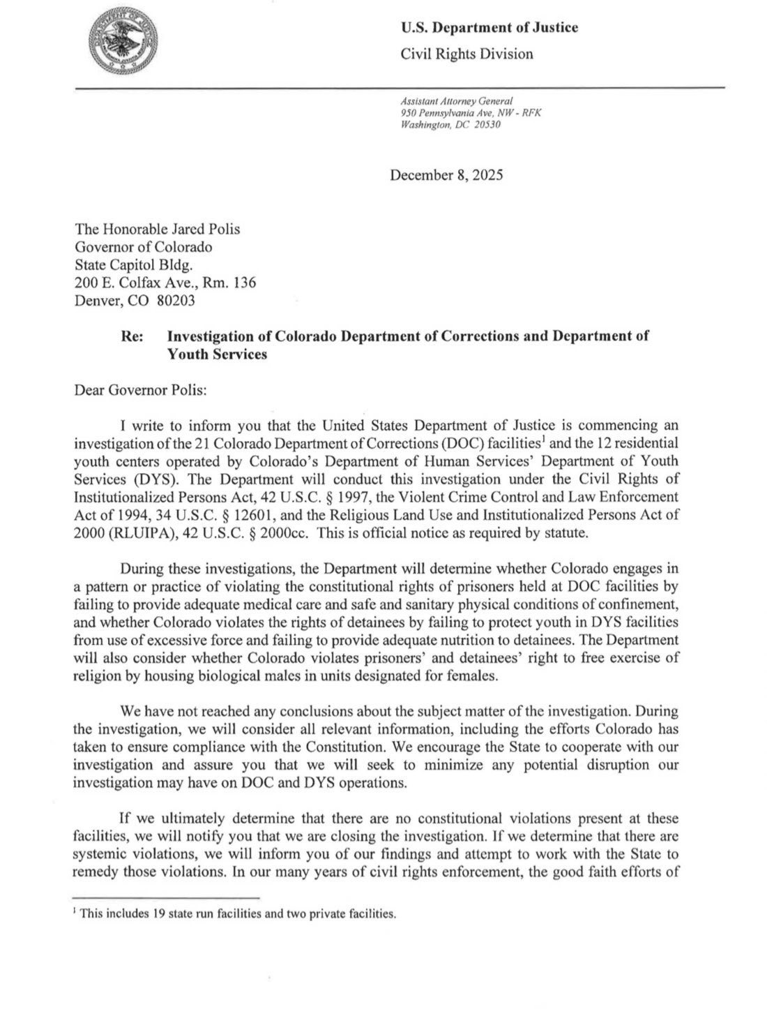 [024]@CivilRights has opened an investigation into the entire Colorado prison system media link media link media link