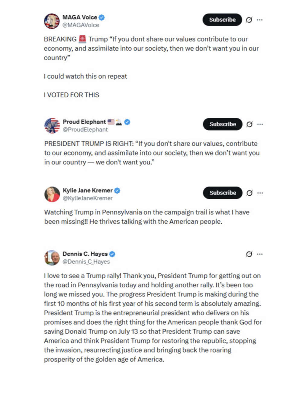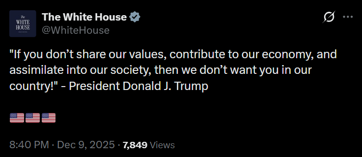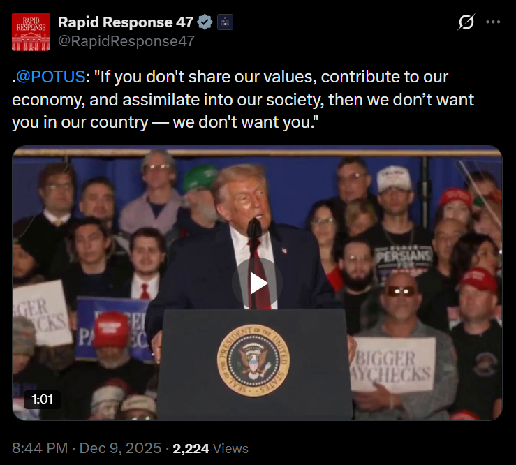 [094]President Trump: If you don't share our values, contribute to our economy, and assimilate into our society, then we don't want you in our country. We don't want you media link media link media link