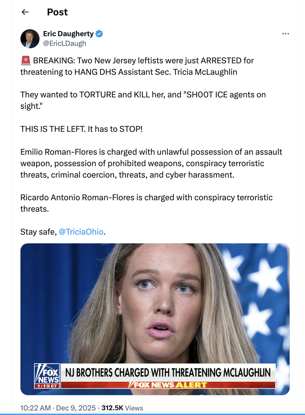[105]BREAKING: Two New Jersey leftists were just ARRESTED for threatening to HANG DHS Assistant Sec. Tricia McLaughlin media link