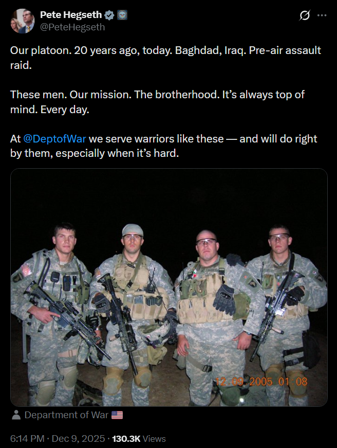 [081]@PeteHegseth - Our platoon. 20 years ago, today. Baghdad, Iraq. Pre-air assault raid media link media link