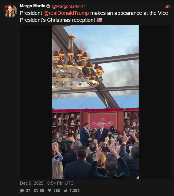 [056]President @realDonaldTrump makes an appearance at the Vice President’s Christmas reception! 🇺🇸 media link media link media link media link media link media link