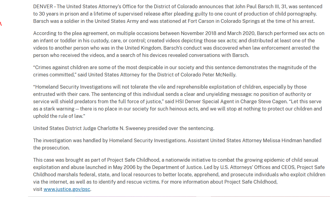 [045]Former Soldier Sentenced To 30 Years For Production Of Child Sexual Abuse Material #Satan media link