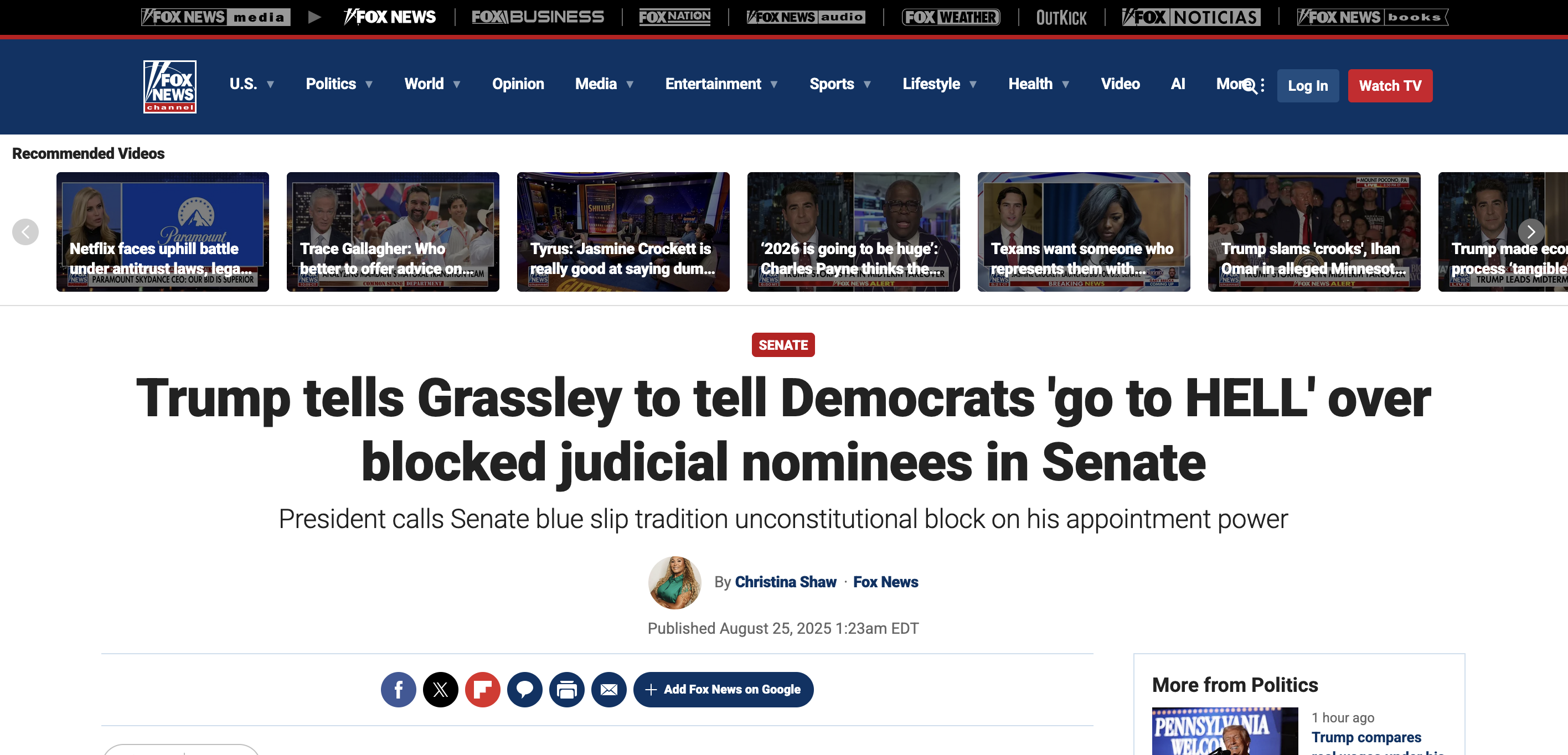 [111]Trump tells Grassley to tell Democrats 'go to HELL' over blocked judicial nominees in Senate media link