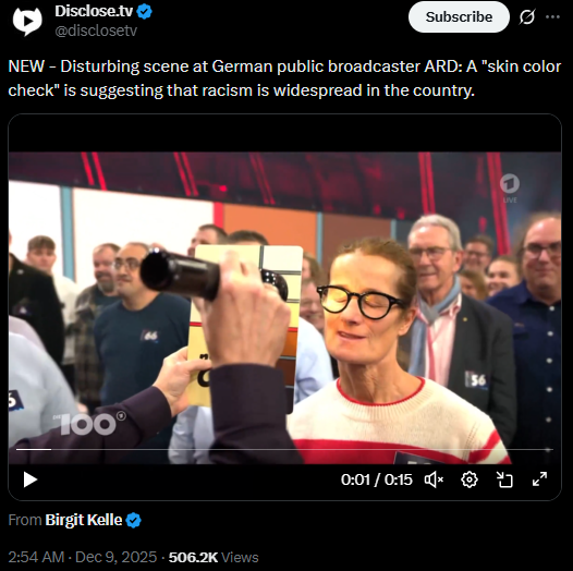 [002]Disturbing scene at German public broadcaster ARD: A "skin color check" is suggesting that racism is widespread in the country media link media link