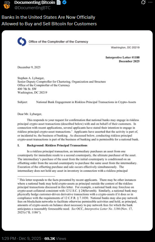 [068]Banks in the United States Are Now Officially Allowed to Buy and Sell Bitcoin for Customers media link media link