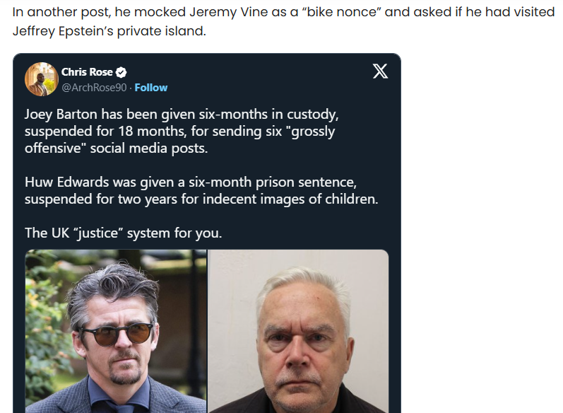 [089]British Soccer Player Given Six Months Suspended Sentence For ‘Grossly Offensive’ X Posts media link media link