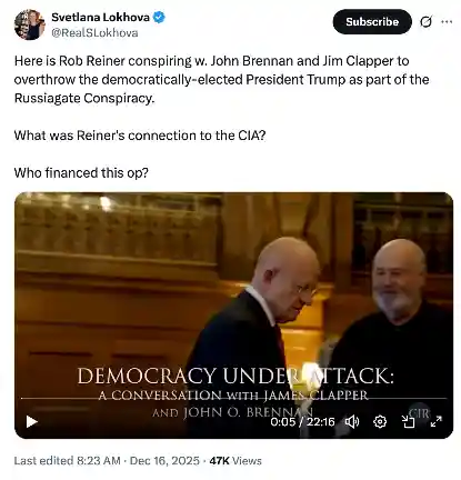 [001]Here is Rob Reiner conspiring w. John Brennan and Jim Clapper to overthrow the democratically-elected President Trump as part of the Russiagate Conspiracy media link