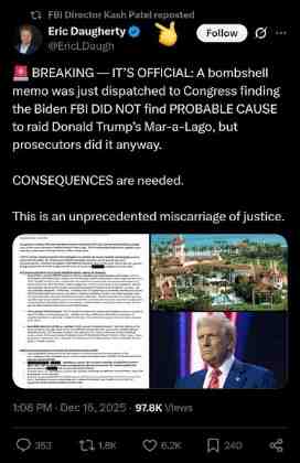 [048]FBI told DOJ they did not have probable cause for raiding President Trump’s home in Mar A Lago but DOJ “didn’t give a damn” and did it anyway
