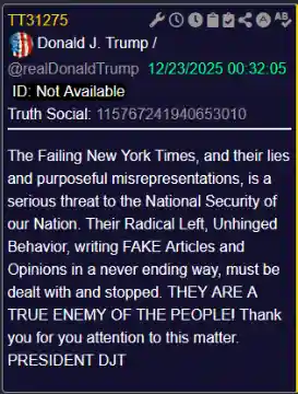 [008]@realDonaldTrump The Failing New York Times, and their lies and purposeful misrepresentations, is a serious threat to the National Security of our Nation. A TRUE ENEMY OF THE PEOPLE! media link