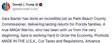 [061]@realDonaldTrump A true MAGA Warrior, who has been with us from the very beginning, Sarah Baxter has my Complete and Total Endorsement for Re-Election media link