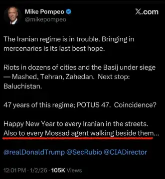 [108]Happy New Year to every Iranian in the streets and also to every Mossad agent walking beside them..../Iran decries foreign interference media link