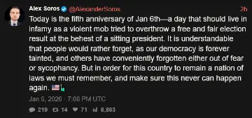 [064]@AlexanderSoros Today is the fifth anniversary of Jan 6th — a day that should live in infamy media link