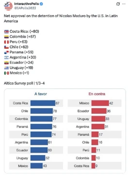 [036]@realDonaldTrump Net approval on the detention of Nicolas Maduro by the U.S. in Latin America media link