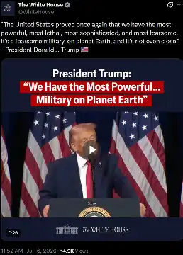 [013]"The United States proved once again that we have the most powerful, most lethal, most sophisticated, and most fearsome, it's a fearsome military, on planet Earth, and it's not even close." - President Donald J. Trump 🇺🇸 media link
