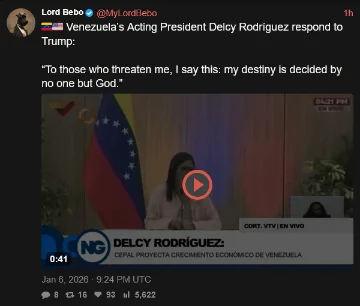 [072]Delcy Rodríguez responds to Trump: “To those who threaten me, I say this: my destiny is decided by no one but God.” media link