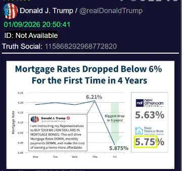[084]@realDonaldTrump Mortgage Rates are NOW 5.7%! Mortgage costs were HUGE under Biden (around 8%). We are bringing Housing Costs DOWN, and putting Americans FIRST! media link