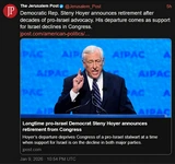 [103]Democratic Rep. Steny Hoyer announces retirement after decades of pro-Israel advocacy media link