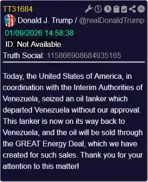 [032]@realDonaldTrump Today, the United States of America, in coordination with the Interim Authorities of Venezuela, seized an oil tanker which departed Venezuela without our approval media link