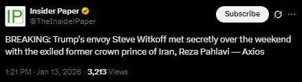 [010]Steve Witkoff met secretly over the weekend with the exiled former crown prince of Iran, Reza Pahlavi media link