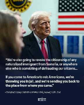 [035]"We intend to imprison any fraudster, POLITICIAN or PUBLIC OFFICIAL involved in sick plots to loot and pillage our country! Think of that ILHAN OMAR!" media link
