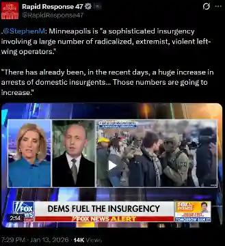 [068]@StephenM: Minneapolis is "a sophisticated insurgency involving a large number of radicalized, extremist, violent left-wing operators." media link