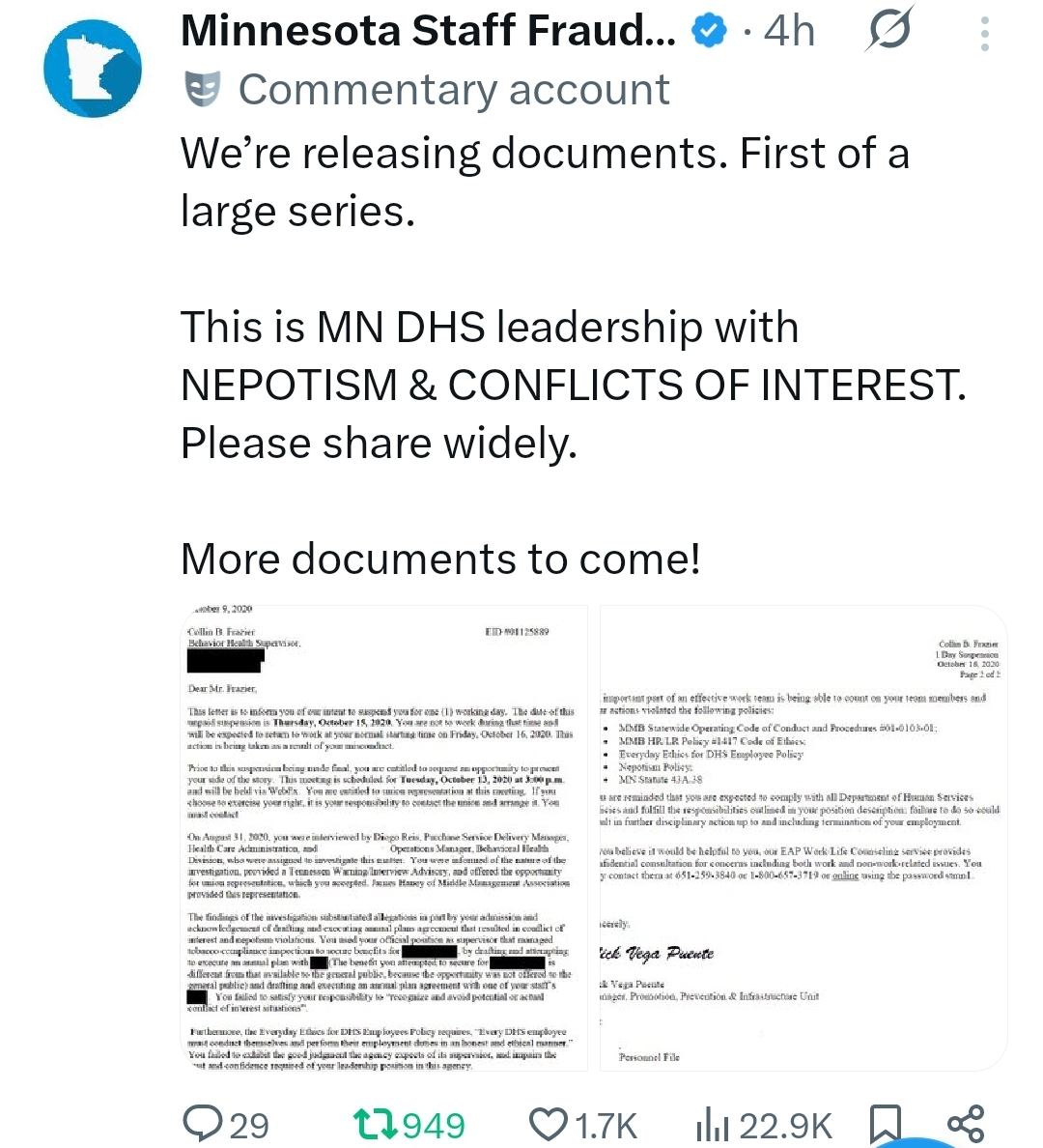 [093]Minnesota Staff Fraud Reporting Commentary: We’re releasing documents. First of a large series media link media link media link media link