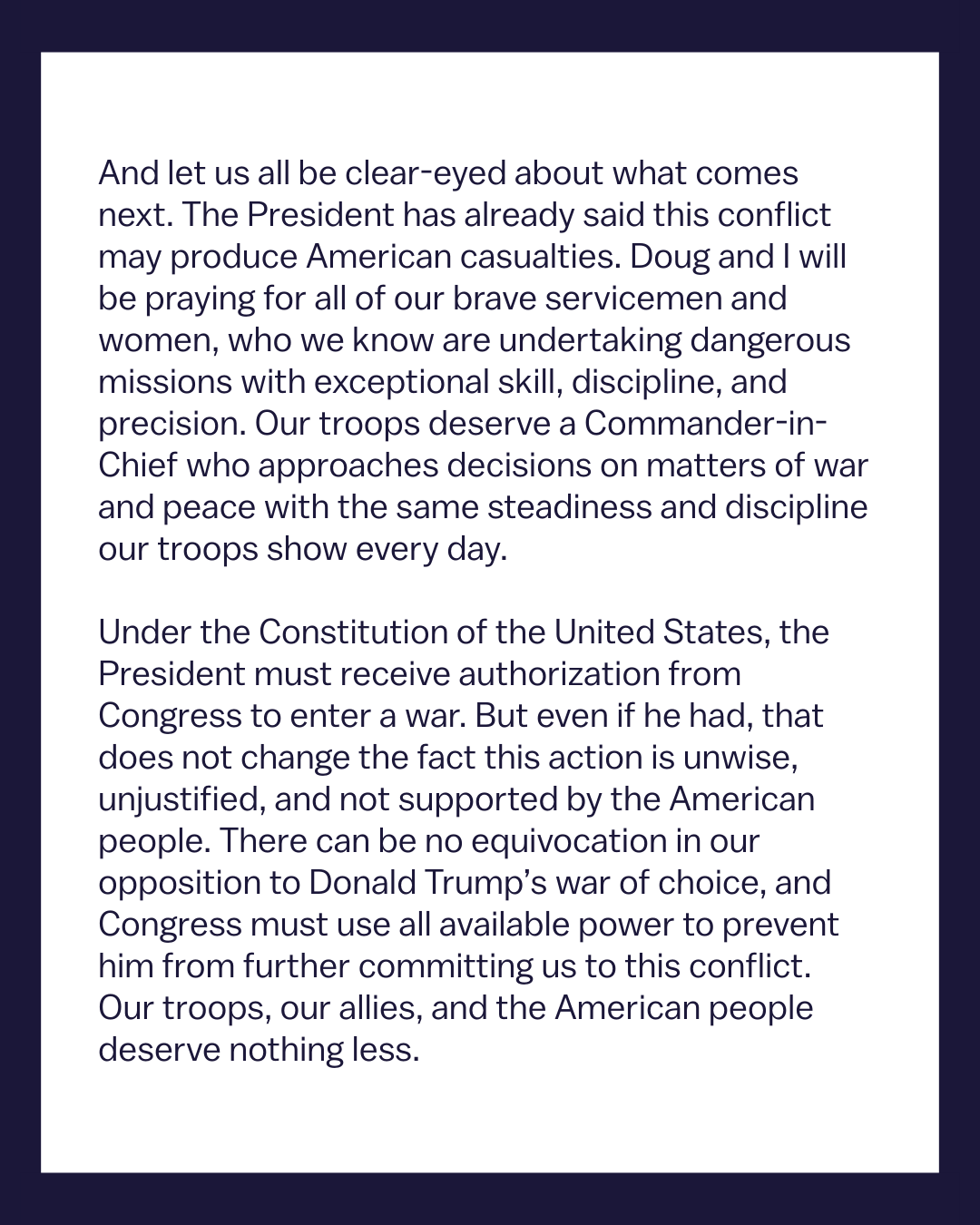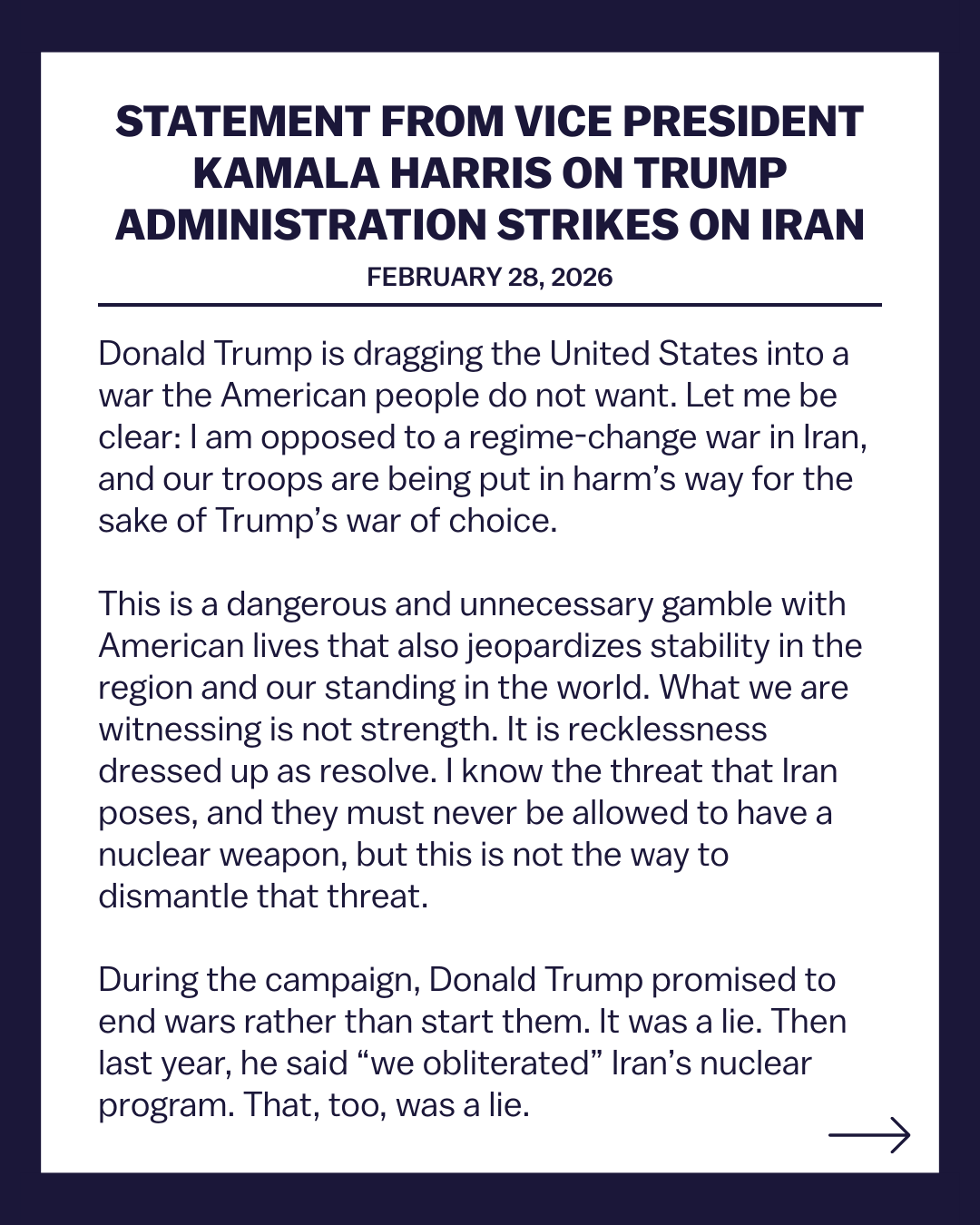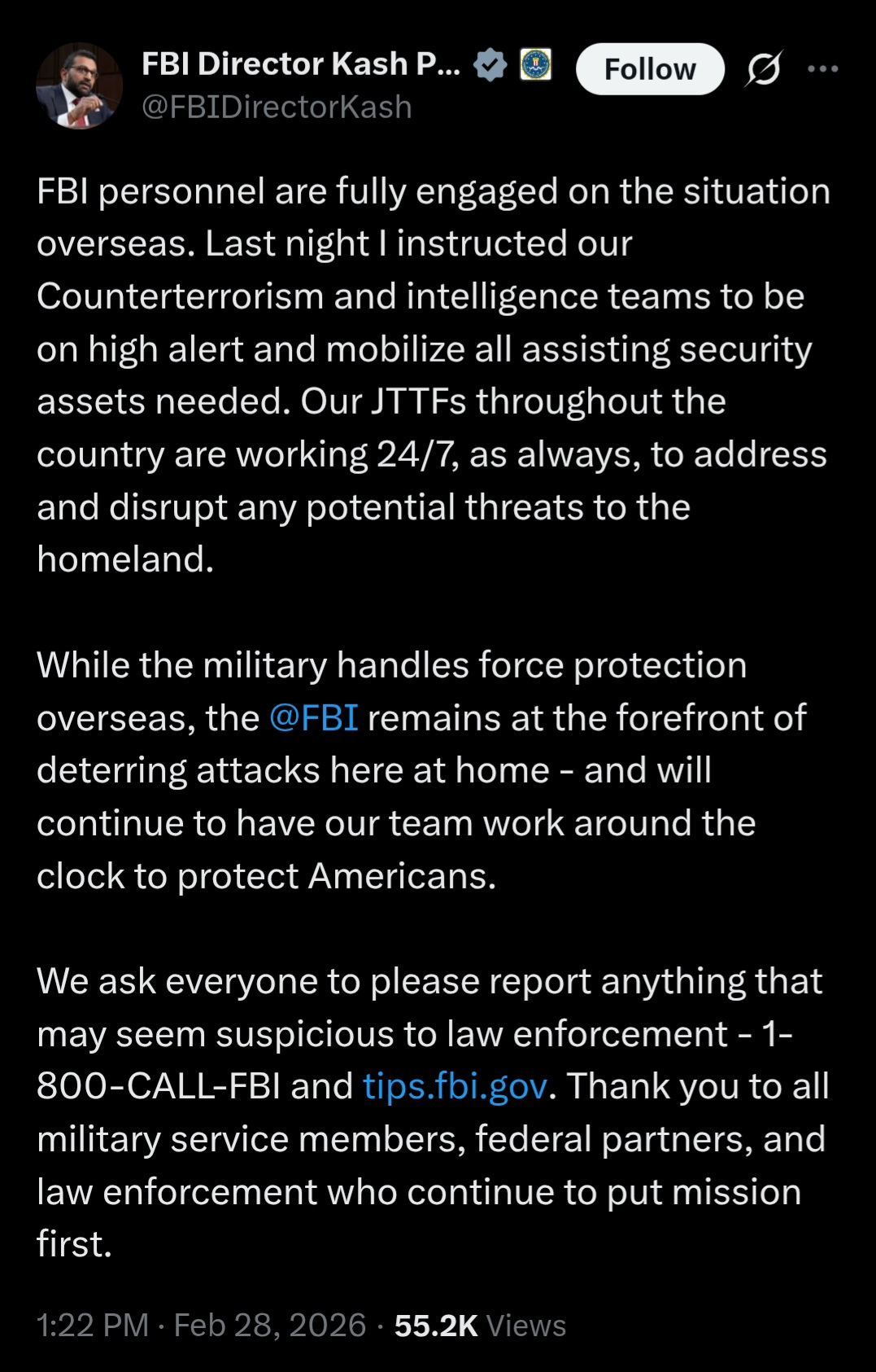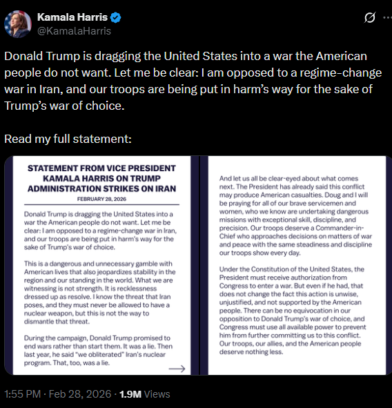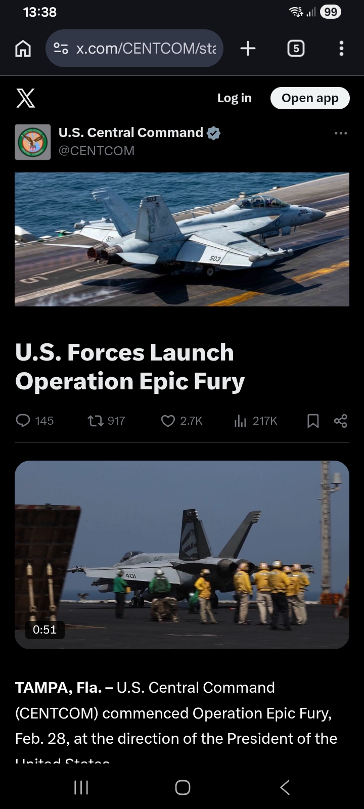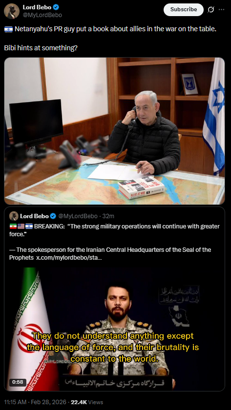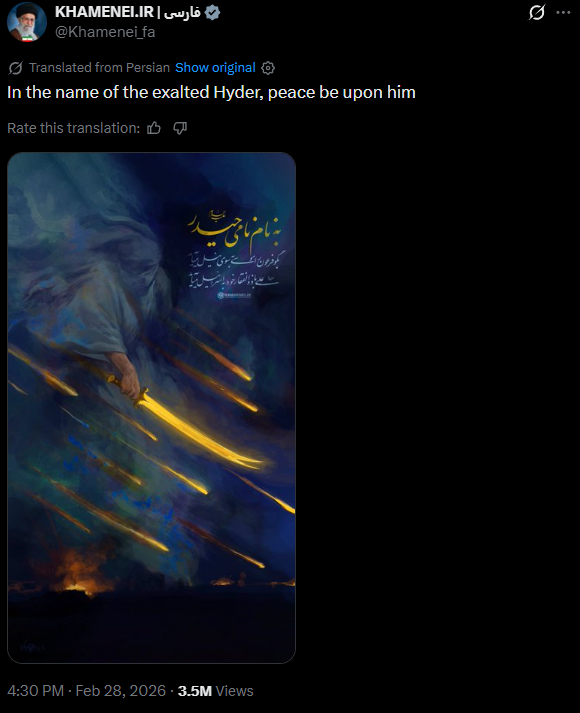 [081]@SecWar The Iranian regime had their chance, yet refused to make a deal — and now they are suffering the consequences. For almost fifty years, Iran has targeted and killed Americans, always seeking the world’s most powerful weapons to further their radical cause. Last night, unlike any previous president, President Trump began dealing with this cancer
