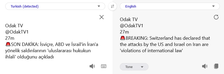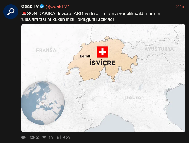 [100]Swiss banksters declared that the attacks by the US and Israel on Iran are 'violations of international law' media link media link media link media link media link