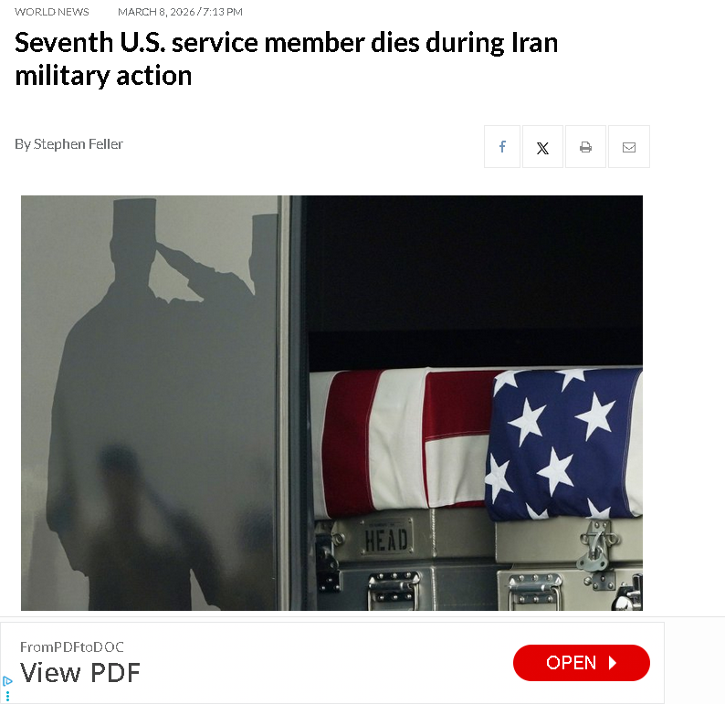 [076]CENTCOM announces the death of a 7th service member who was seriously injured in Saudi Arabia on March 1