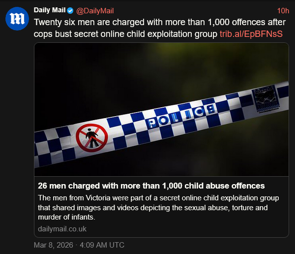 [028]Twenty six men are charged with more than 1,000 offenses after cops bust secret online child exploitation group media link
