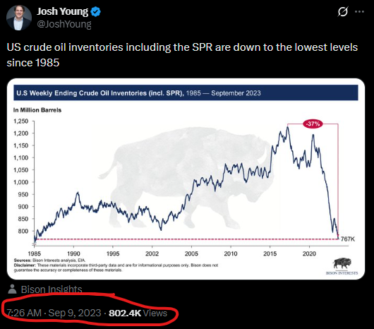 [090]US crude oil inventories including the SPR are down to the lowest levels since 1985 media link media link
