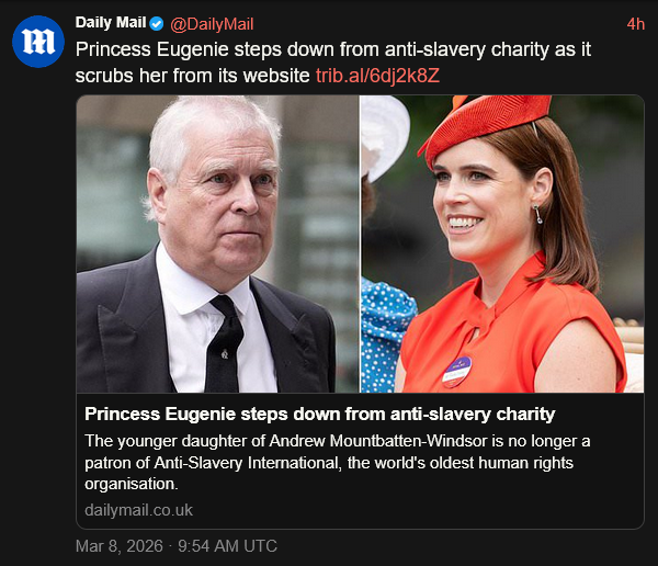 [026]Princess Eugenie steps down from anti-slavery charity as it scrubs her from its website media link media link