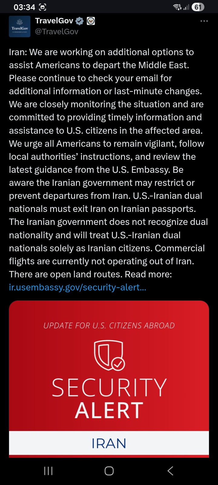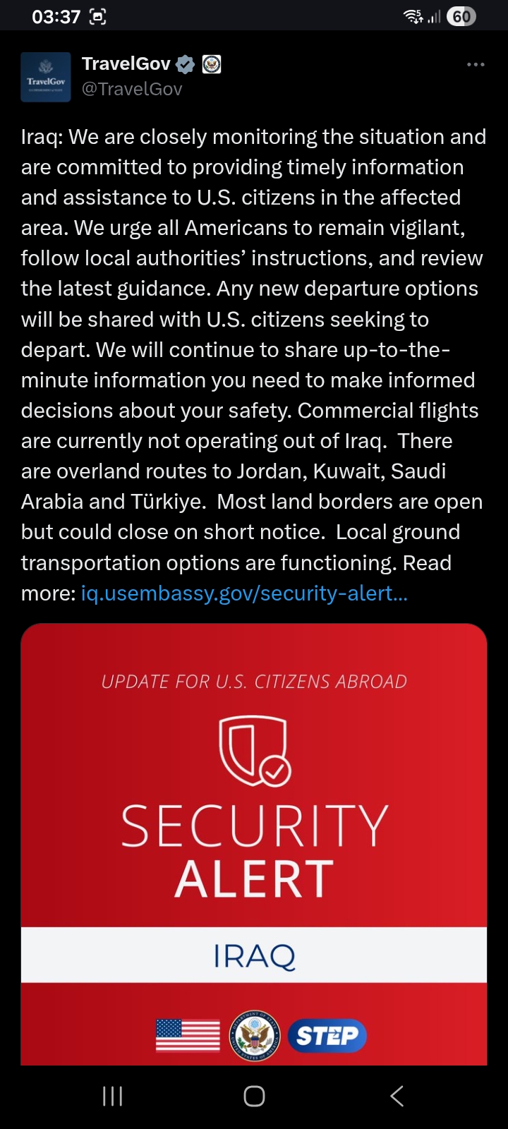 [002]@TravelGov - SECURITY ALERT - [Marker] Iran is next media link media link media link media link media link media link media link media link media link media link media link
