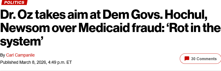 [081]Oz on Medicare Fraud - I’m going to single out Gov Walz in Minnesota, Gov. Newsom in California and Gov. Hochul here in New York” media link