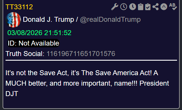 [104]@realDonaldTrump It’s not the Save Act, it’s The Save America Act! A MUCH better, and more important, name!!! President DJT media link