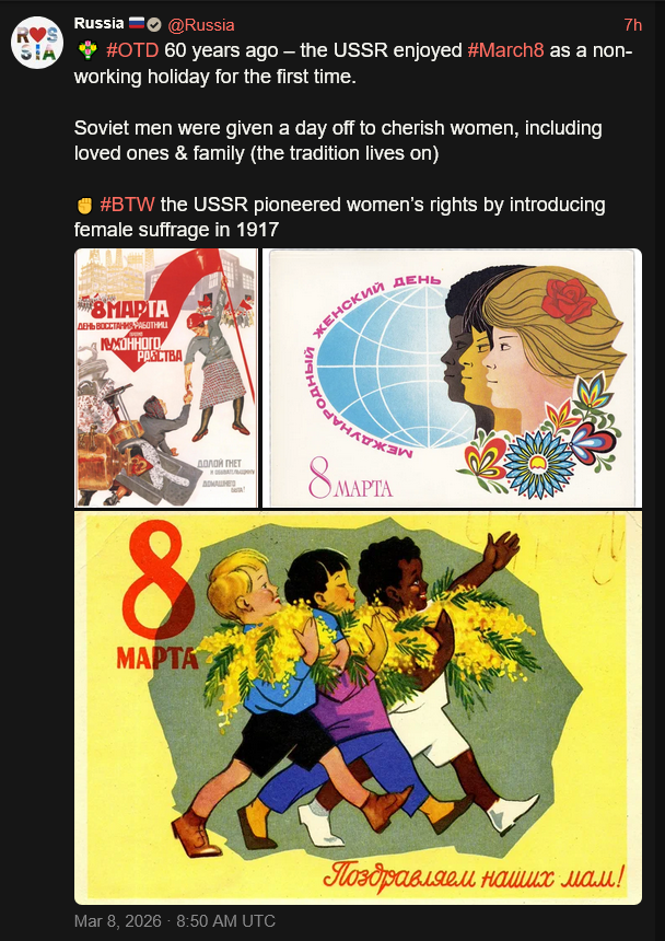 [045]#OTD 60 years ago USSR enjoyed #March8 as a non-working holiday when Soviet men were given a day off to cherish women media link