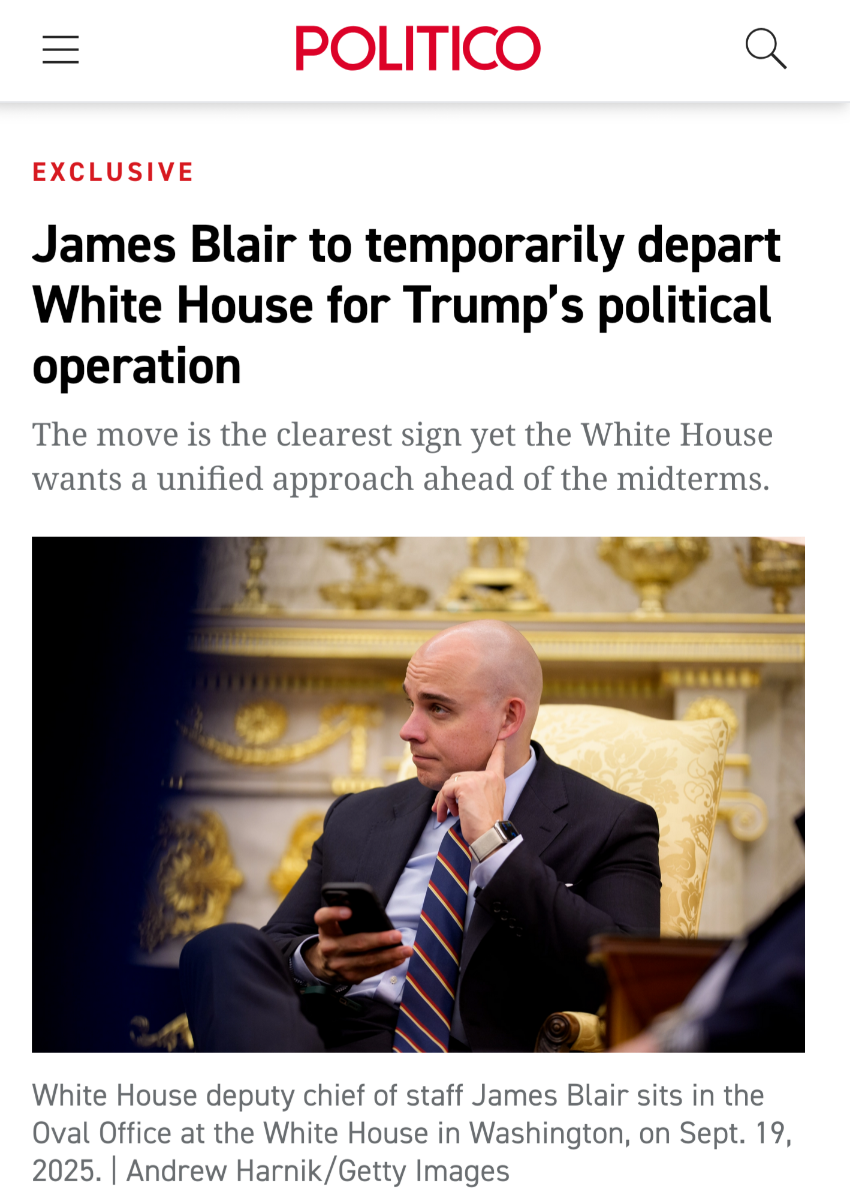 [032]ICYMI: White House deputy chief of staff James Blair will take a temporary leave of absence to run President Donald Trump’s political operation for the midterms media link