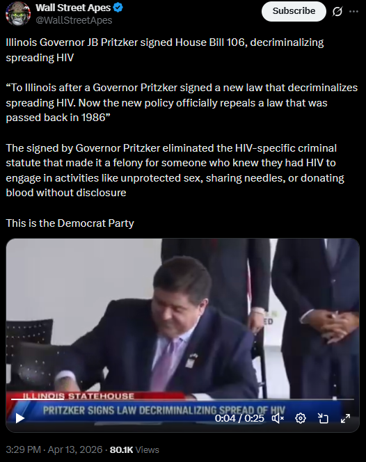 [044]Illinois Governor JB Pritzker signed House Bill 106, decriminalizing spreading HIV media link media link