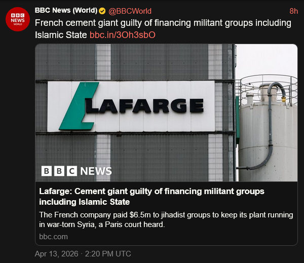 [064]Lafarge: Cement giant guilty of financing militant groups including Islamic State media link media link