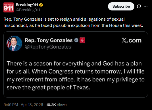 [062]Rep. Tony Gonzales is set to resign amid allegations of sexual misconduct, as he faced possible expulsion from the House this week media link media link media link